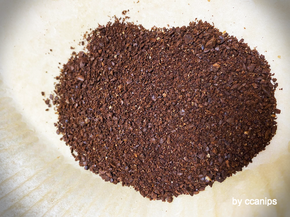 아래 홀빈을 10초 분쇄한 경우 드문드문 갈리지 않은 원두가 보여진다.