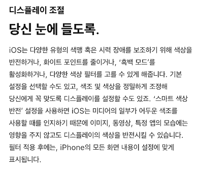 휴대폰에는 색맹이나 시각장애를 보조하는 다양한 디스플레이 모드가 있다. 그중 하나가 흑백모드이며, 간단하게 설정하는 방법은