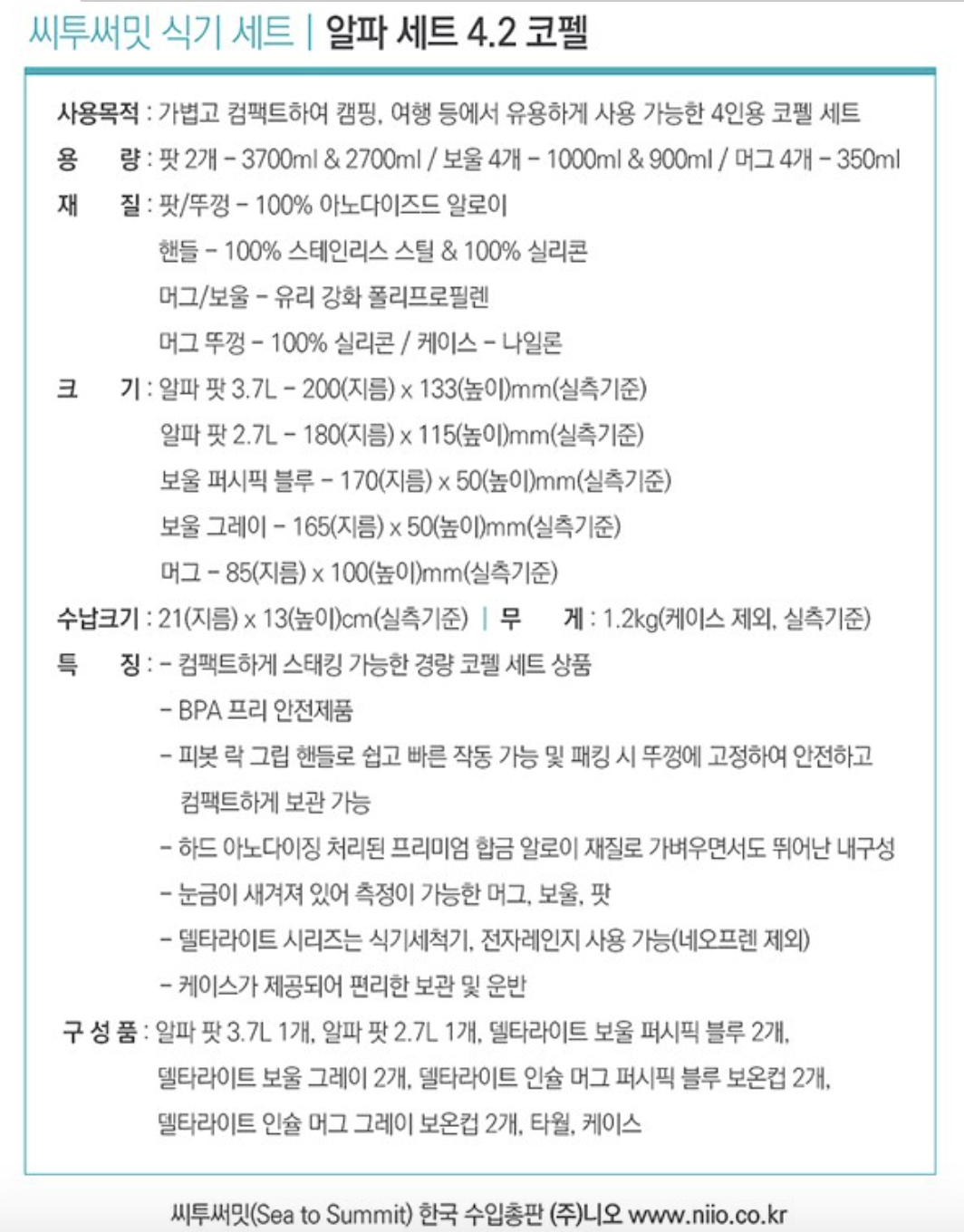 * 출처 : 쿠팡 씨투써밋 알파세트 4.2 코펠 자세히보기