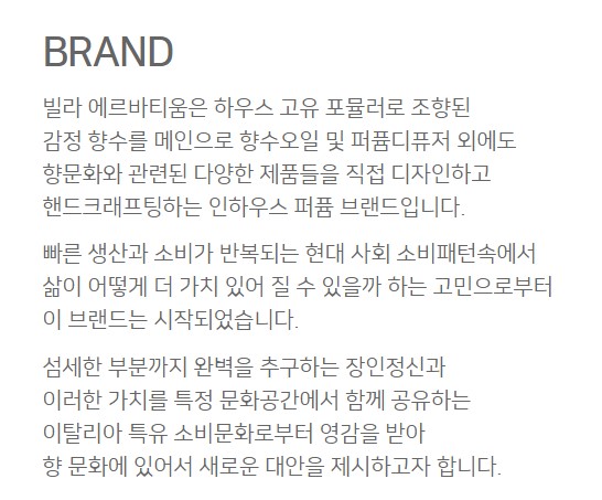 얼마전 아난티 방문했다 보게 된 빌라 에르바티움 (VILLA ERBATIUM) 의 오일향수가 끌려서 구매하게 되었다.