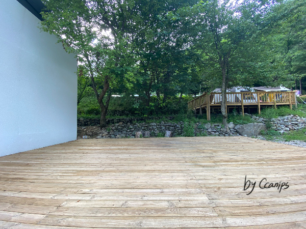 내가 방문했던 그때는 계속 습했기 때문에 데크 사이로 집게 벌레가 너무 많이 올라오고 짐에도 옮겨와서