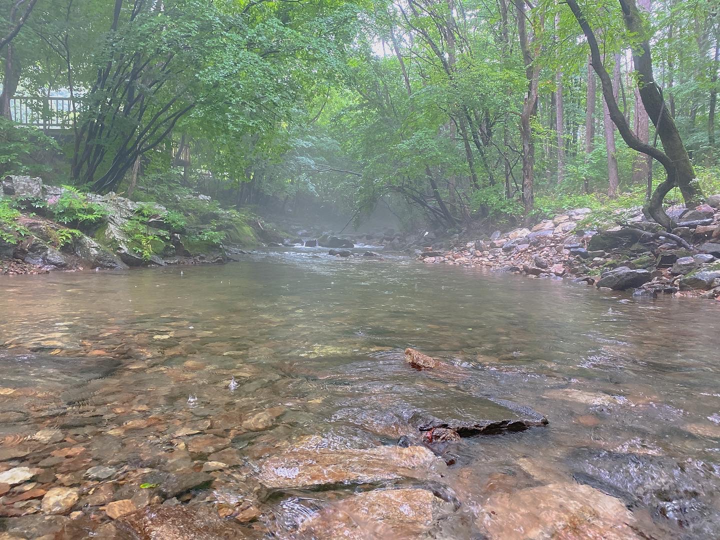 평창 휘게 포레스트 계곡 근처에 가더라도 차갑고 냉한 기운이 몽실몽실 올라온다.