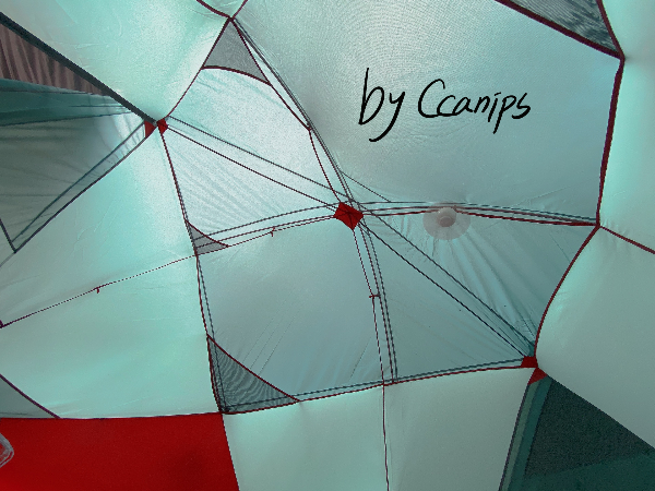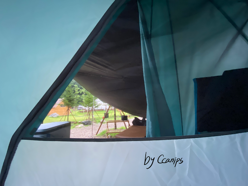 전용플라이가 텐트보다 떠 있고 스커트가 없는 형태이다 보니 비가 오거나 텐트 안이 밝을땐 플라이와 텐트 사이로