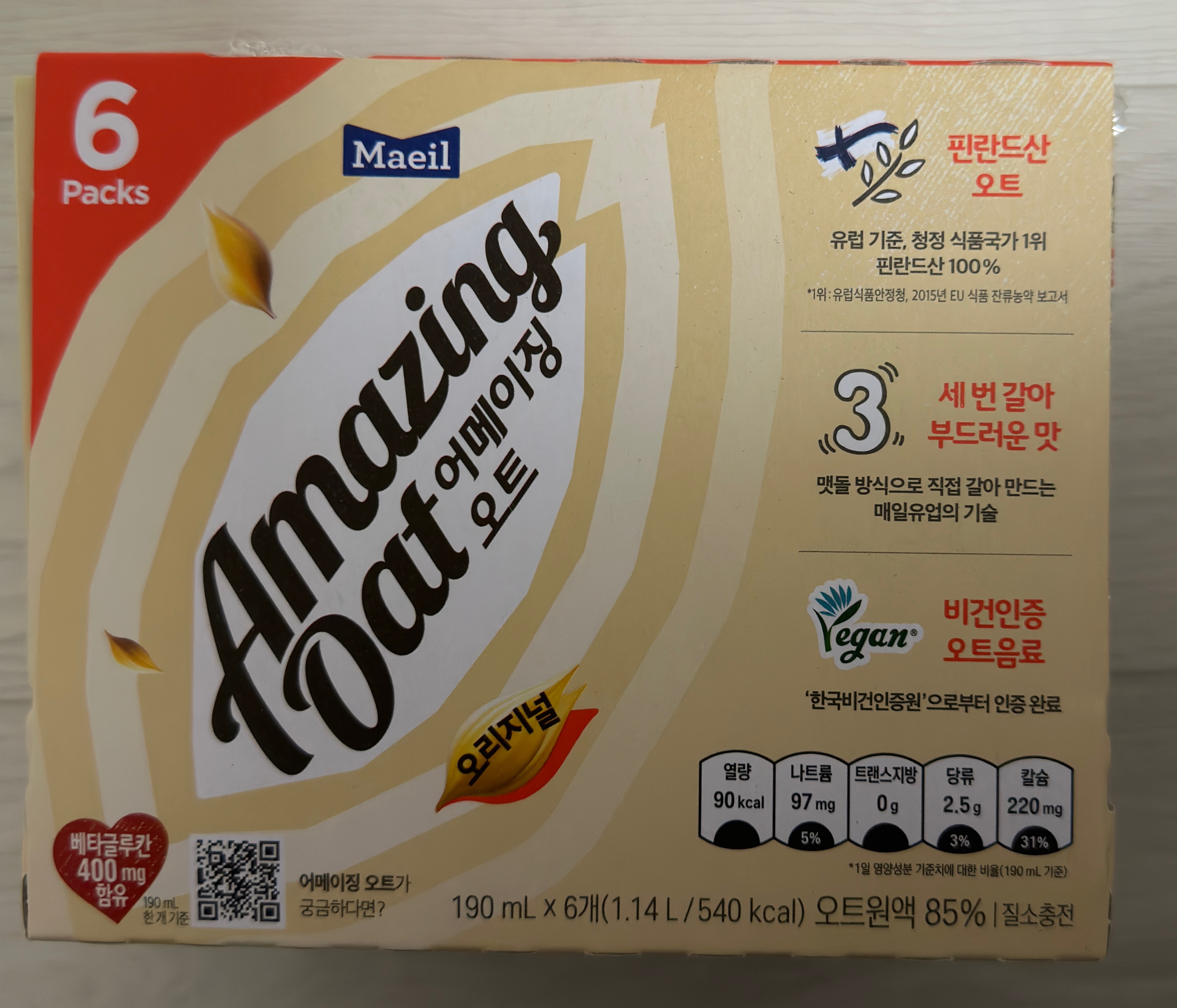 비건인증 음료, 베타글루칸 400mg 함유, 청정 핀란드산 오트