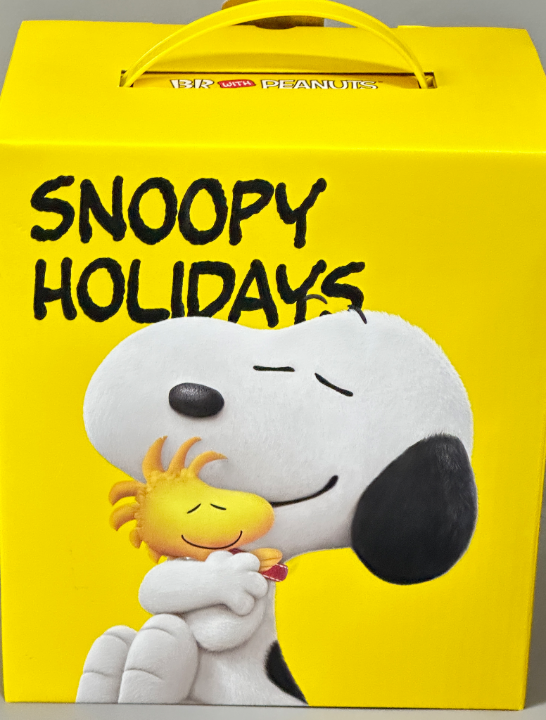 노란색의 스누피 박스 귀욤귀욤하구나.