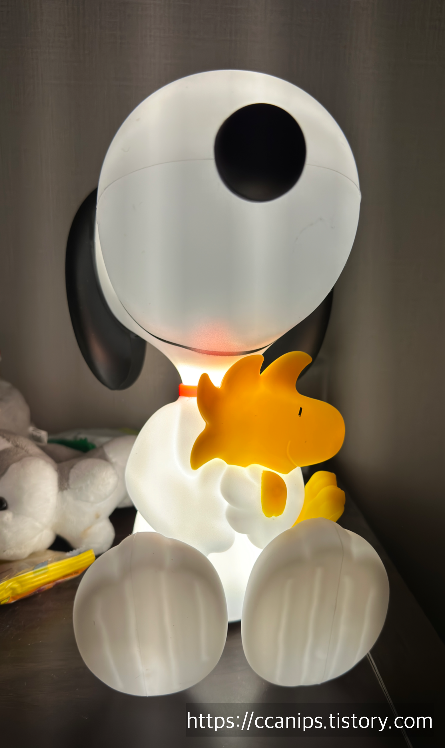 등을 어두운방에서 켰을때는 은은한 불빛의 스누피가 있으니 귀여운 느낌?