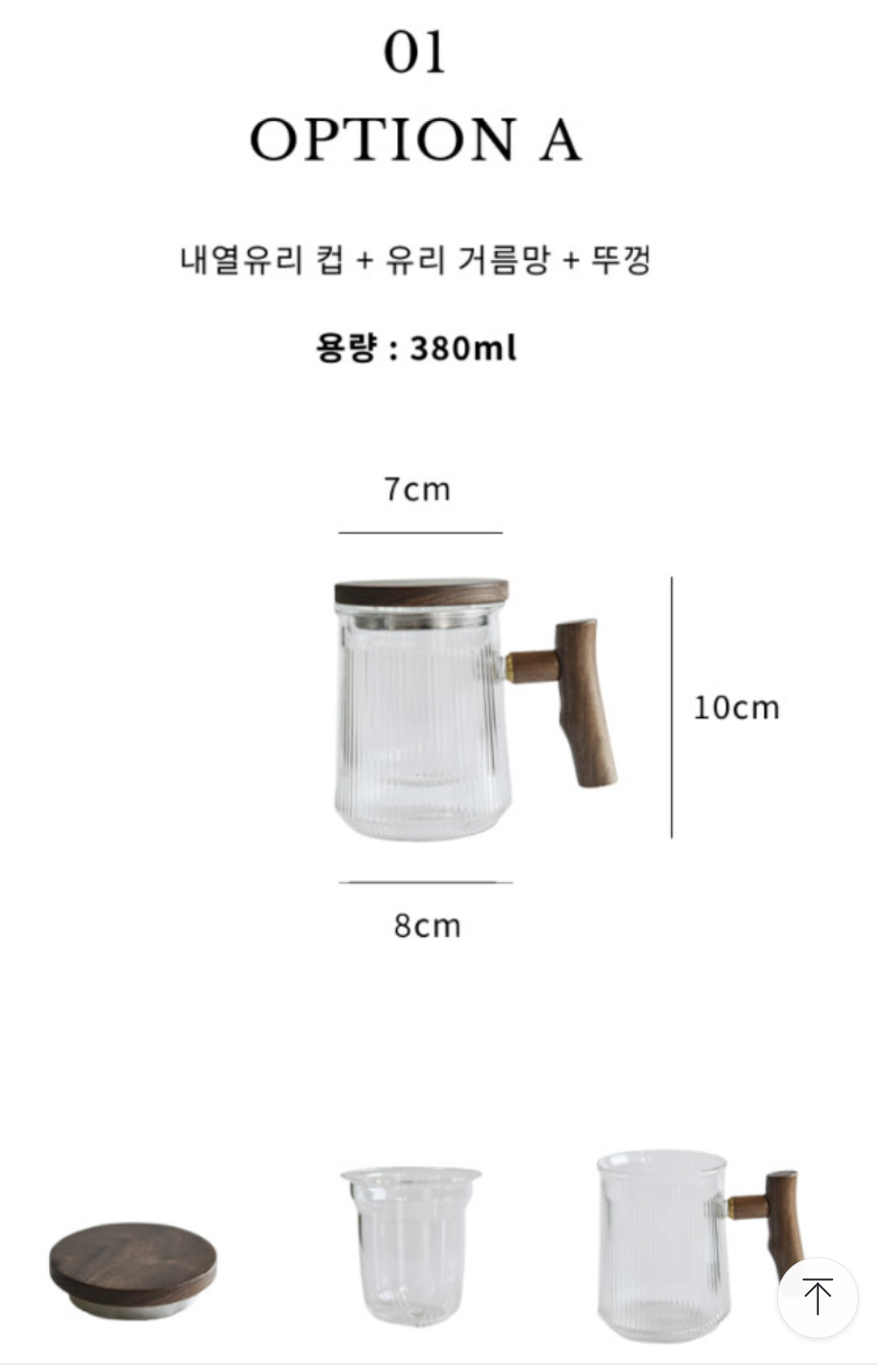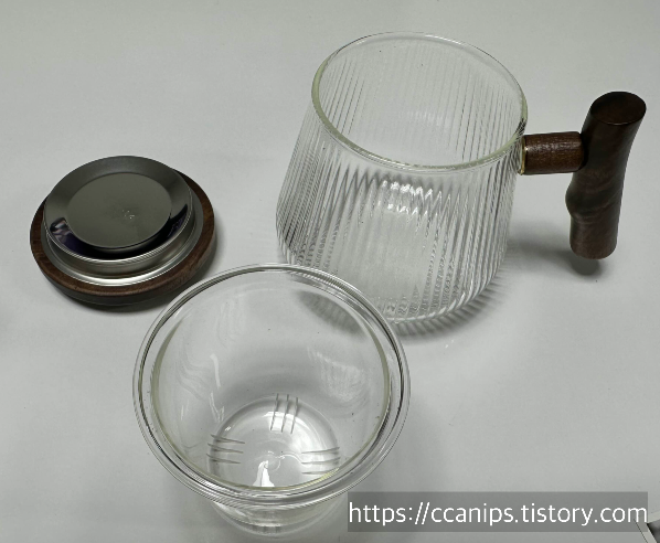 구성품은 뚜껑, 내열유리컵, 유리거름망이 있다.