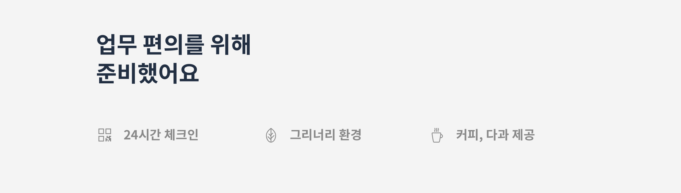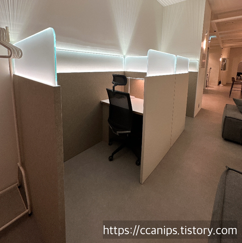 스터디카페도 24시간 체크인이 되겠지만 주 타겟층이 학생이 아니니 좀 더 자유로운 업무 공간이 되는것 같다.