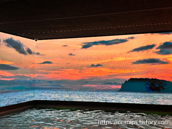 virtual spa: 다양한 영상이 3면에 나오는 공간.