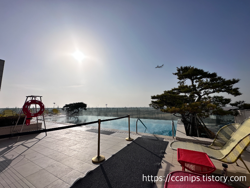 3층 야외에 있는 풀이였는데 생각보다 좋았다. 비행기를 보면 수영할 수 있는 곳. 사람이 붐비지 않아서 좋았던 곳.