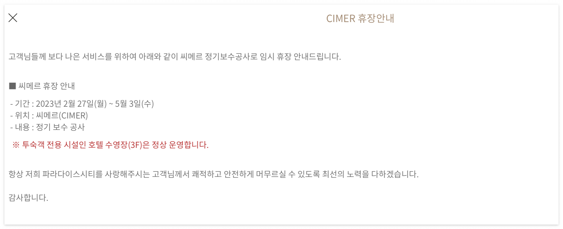 [씨메르 운영시간 및 안내사항]