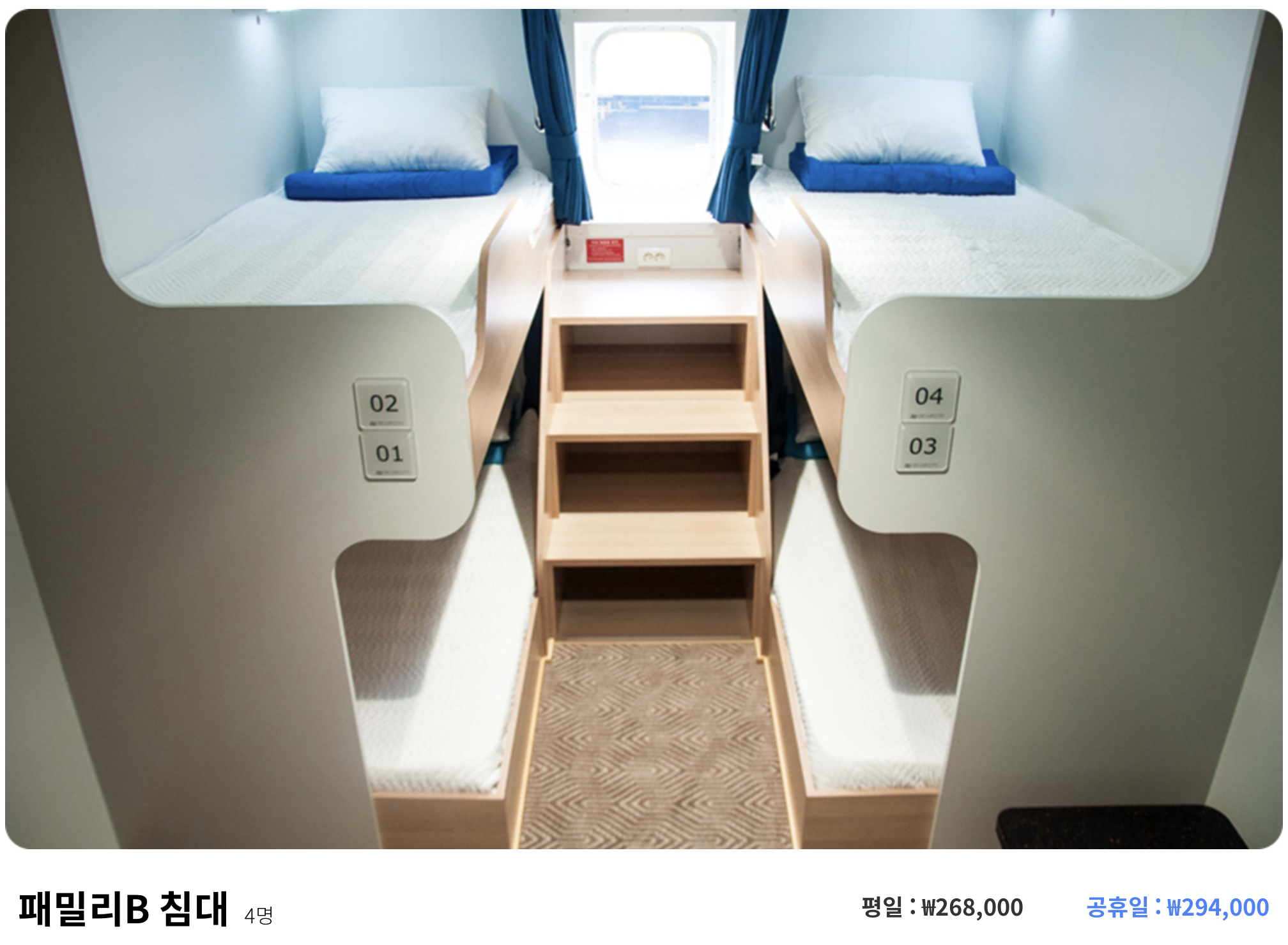 | B패밀리 객실 | 4명 | 침대 | 268,000 | 254,900 | 294,200 | 279,800 |