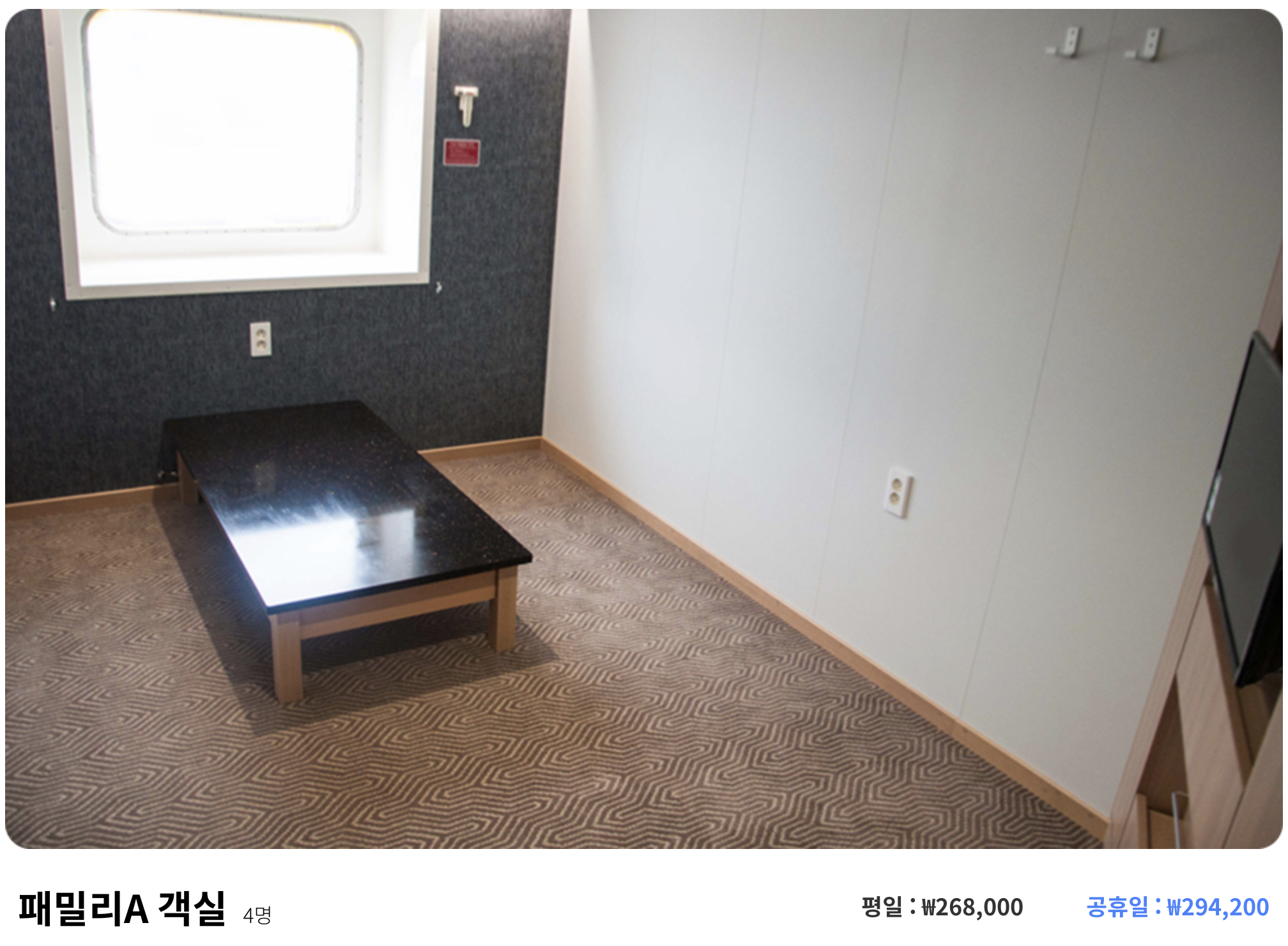 | A패밀리 객실 | 4명 | 객실 | 268,000 | 254,900 | 294,200 | 279,800 |