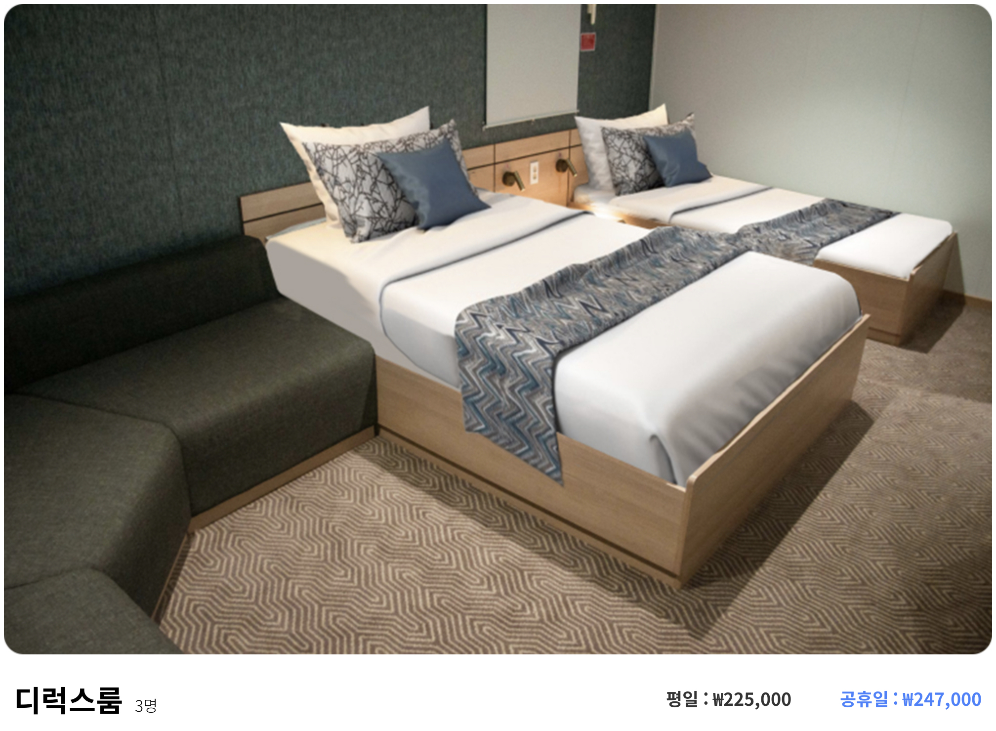 | 디럭스룸 | 3명 | 침대 | 225,000 | 214,000 | 247,000 | 234,900 |