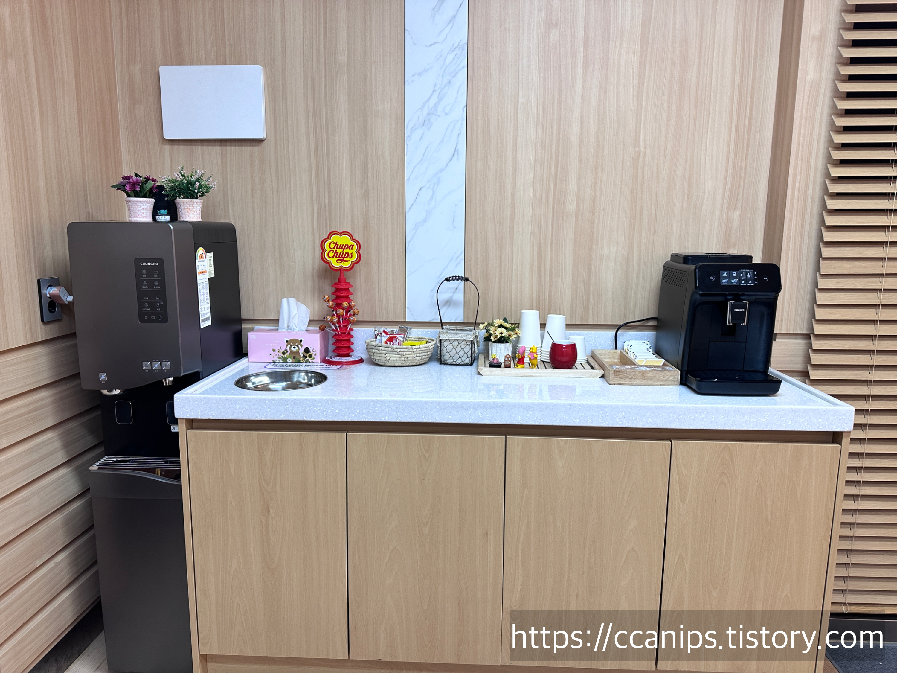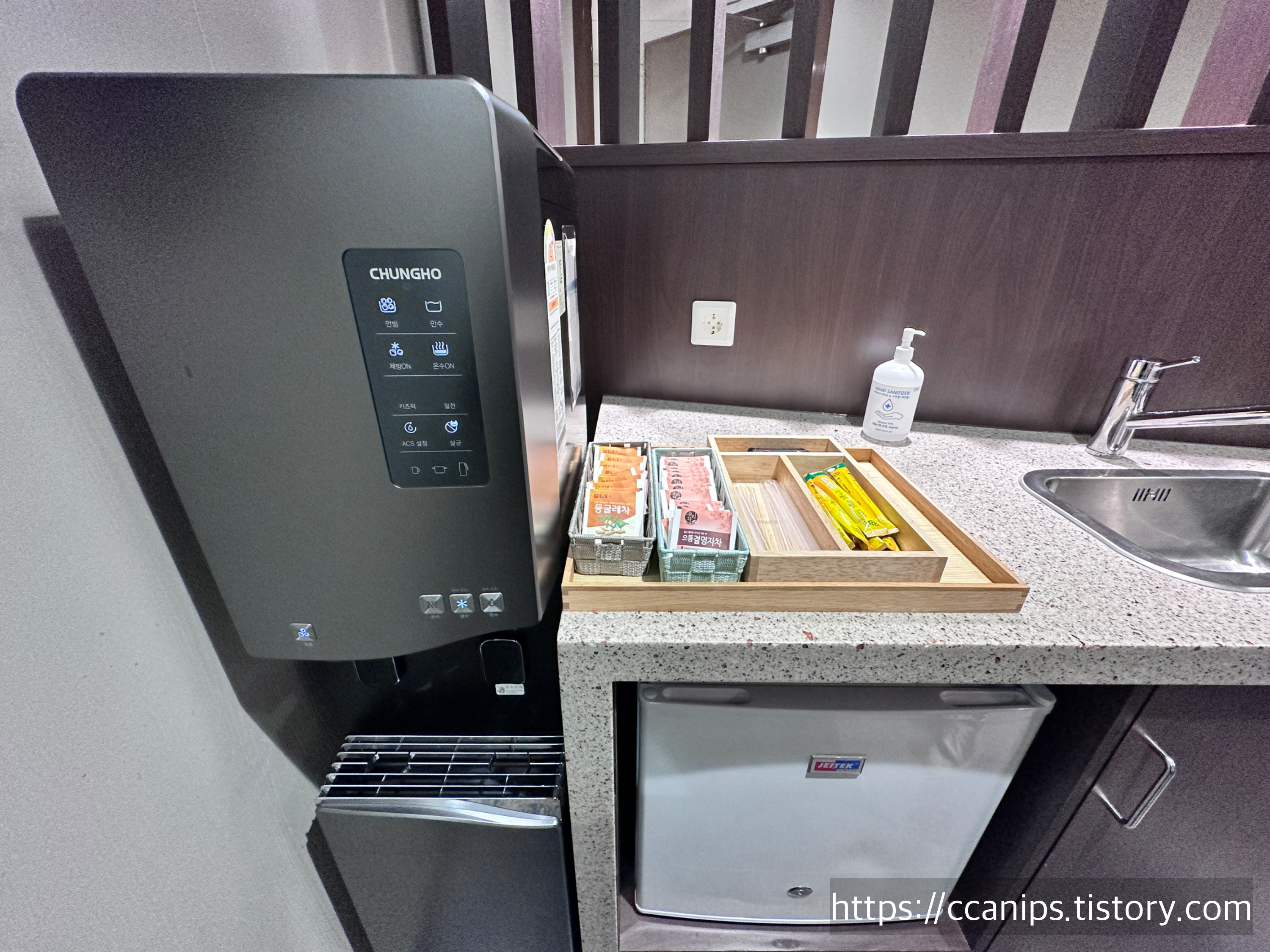 간단하게 차도 마실수 있고 냉온정수기도 있다.