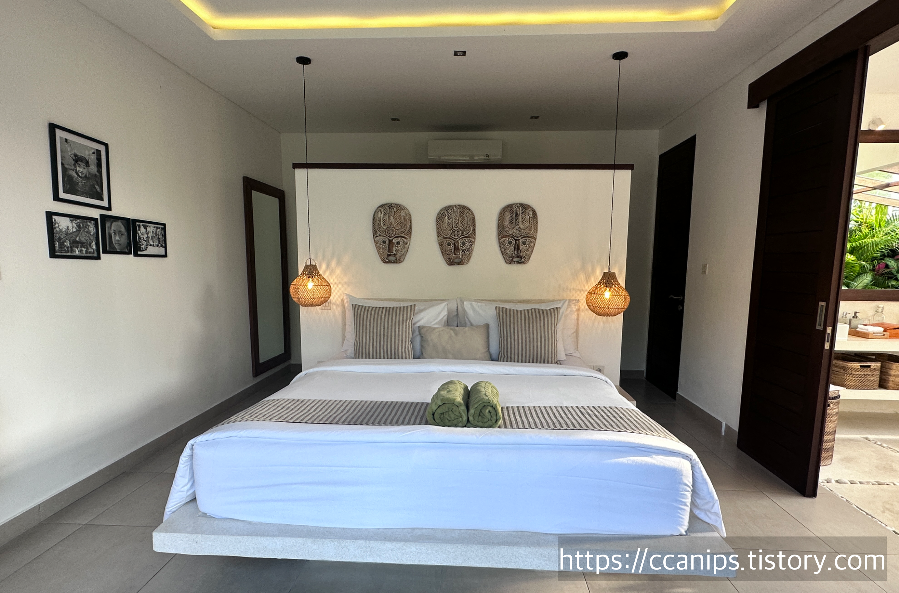 야외 거실 바로 옆에 있는 방과 제일 끝쪽에 있는 방을 선택.