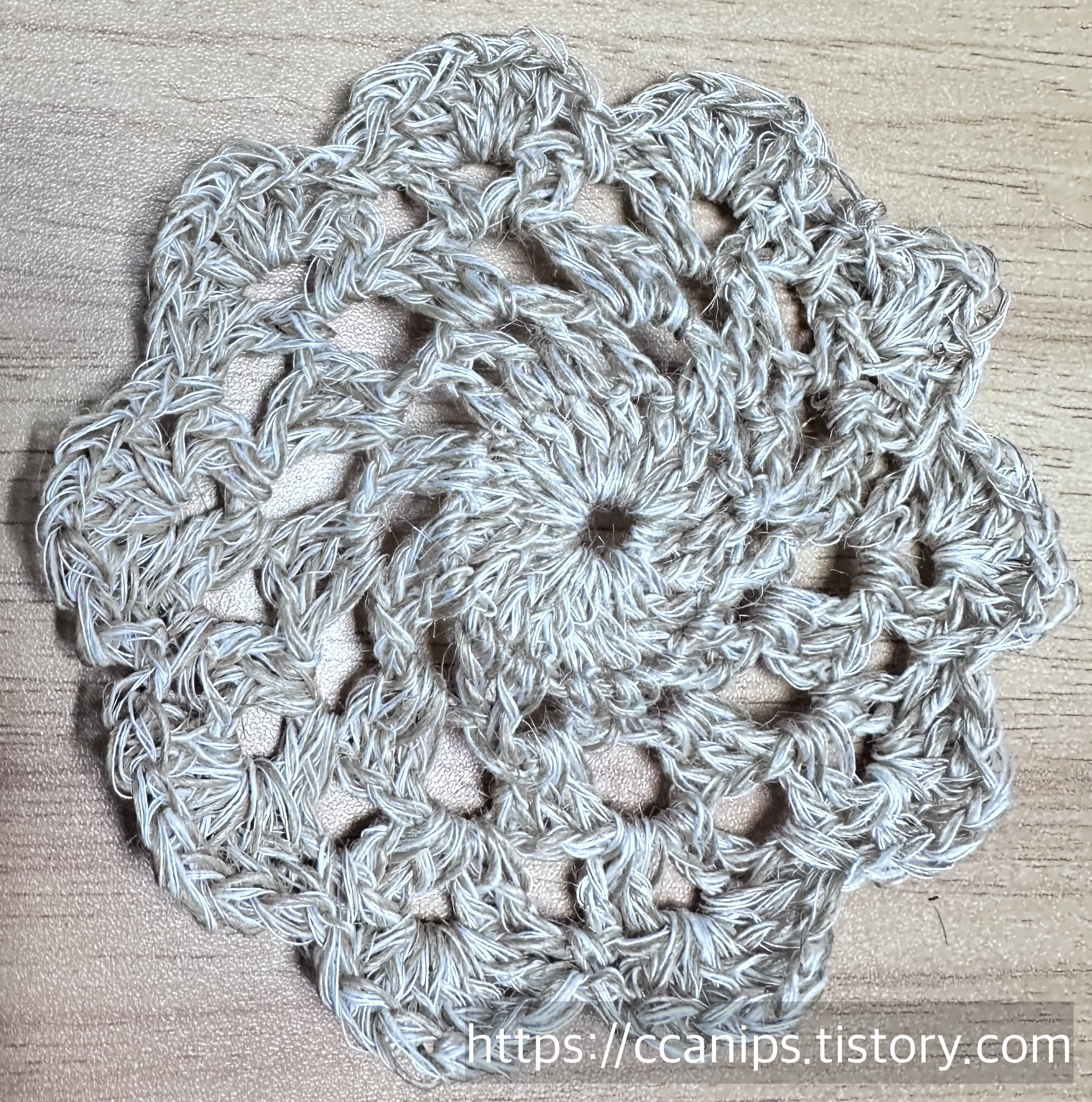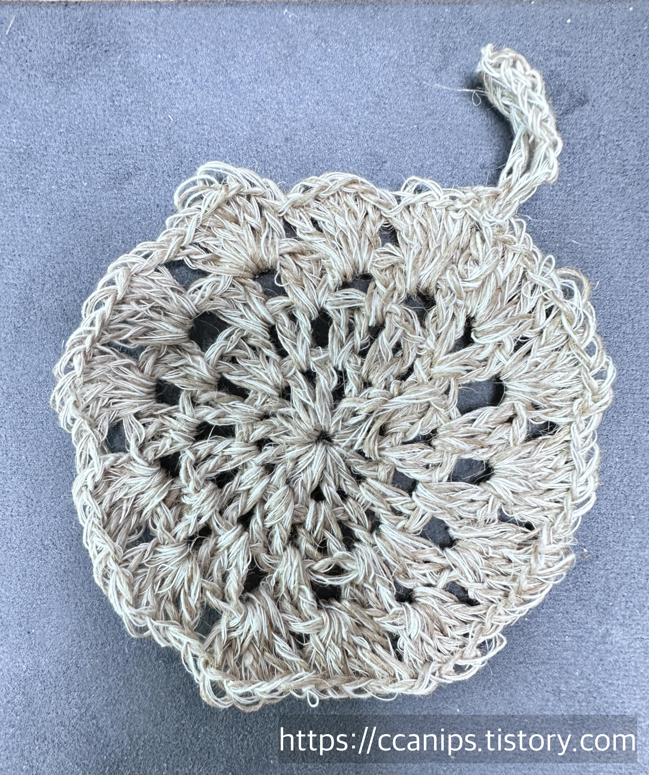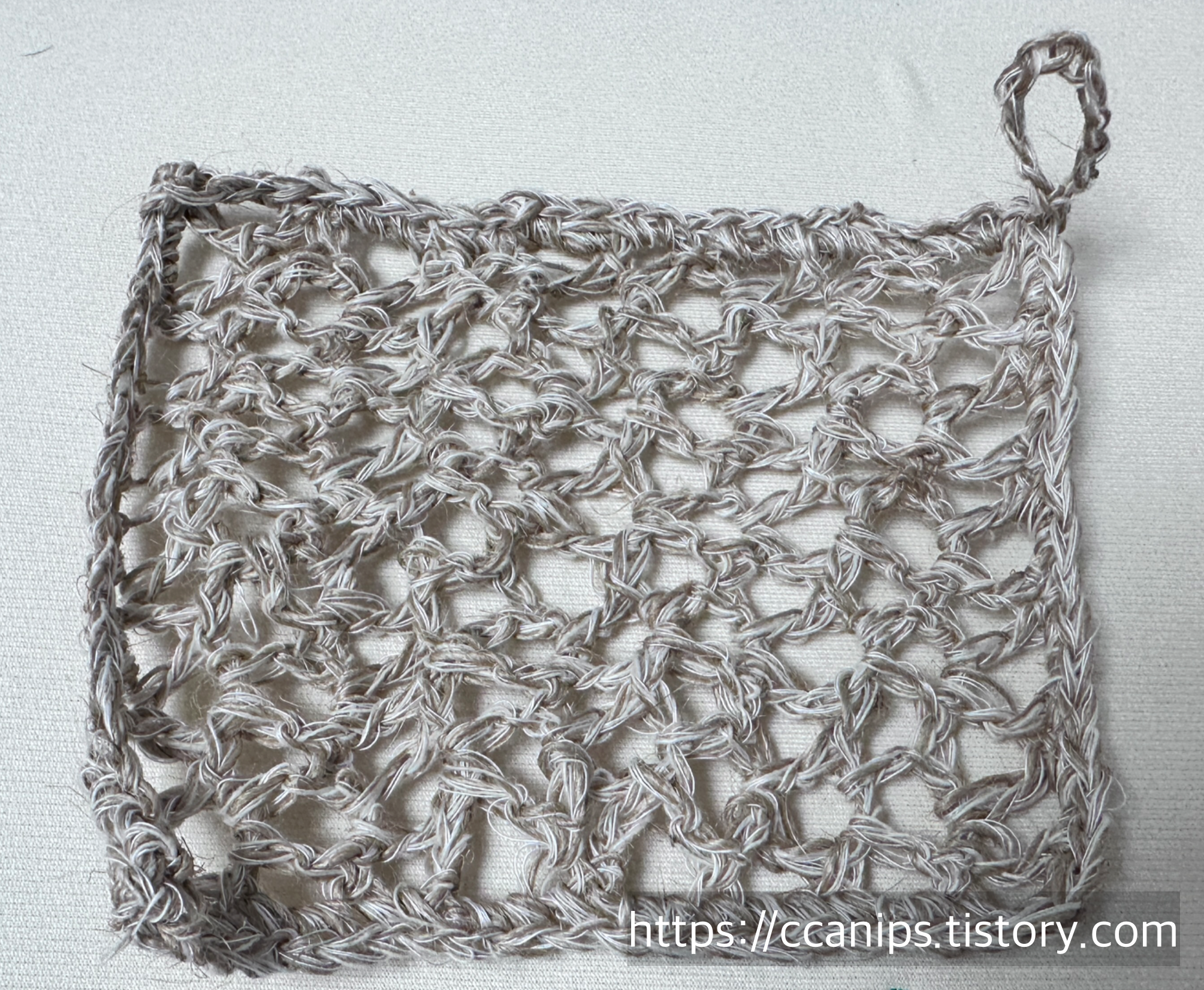 이번에는 천연삼베실로 수세미를 떠 보았다.