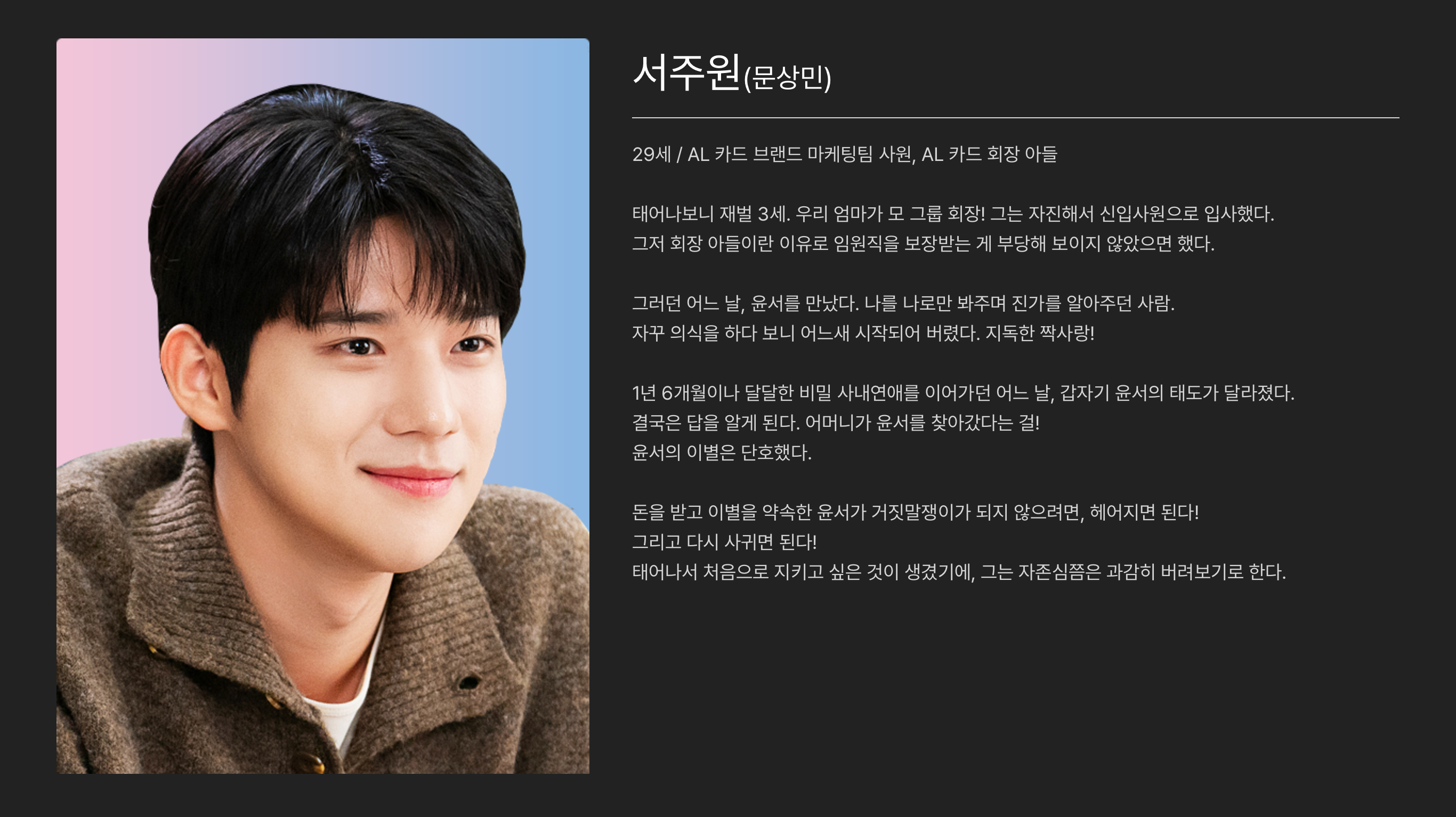 문상민배우님 훤칠하니 멋진 연하남의 정석.