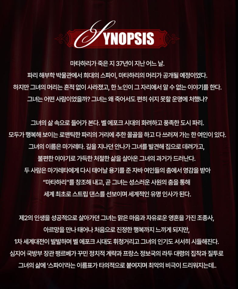 로 사형을 당한 무희 실존인물 ’마타하리‘ 모티브로