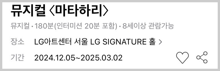 이제 마타하리 막공 티켓까지